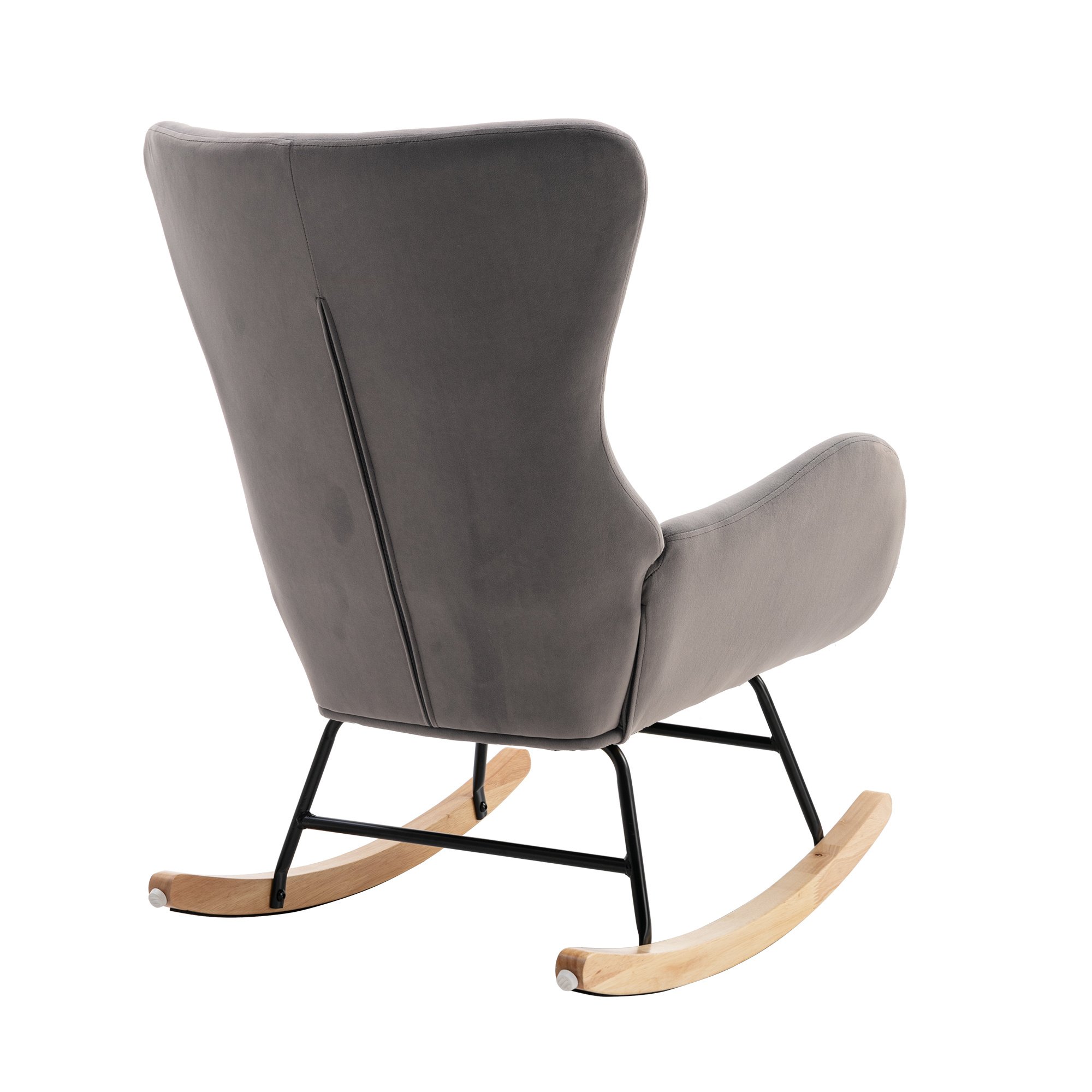 Velvet Fabric Padded Seat Rocking Chair With High Backrest And Armrests