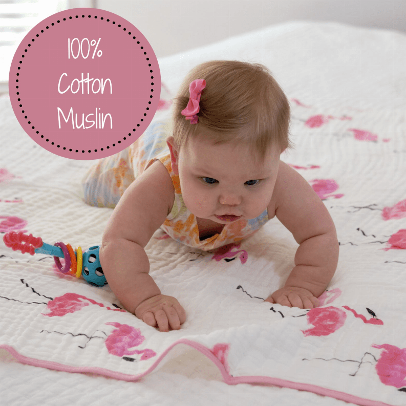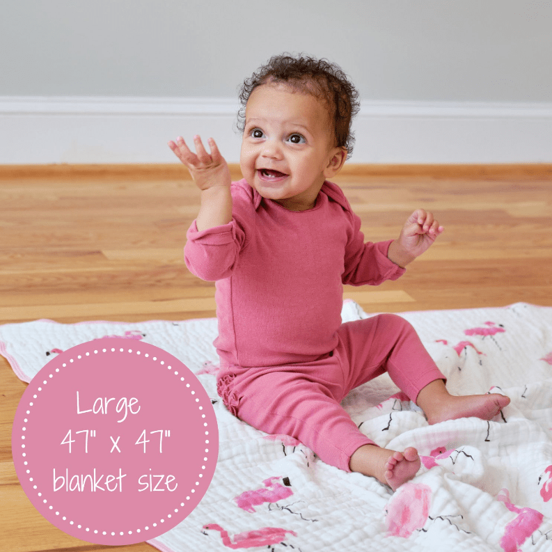 • CUTE FLAMINGO PRINT - This bright and on-trend design is perfect for keeping in the nursery or using as a stroller cover for your baby girl. Moms and dads will love receiving these as a baby shower gift or welcome present. The Pink edging really elevates this quilt to make it look and feel more premium!
