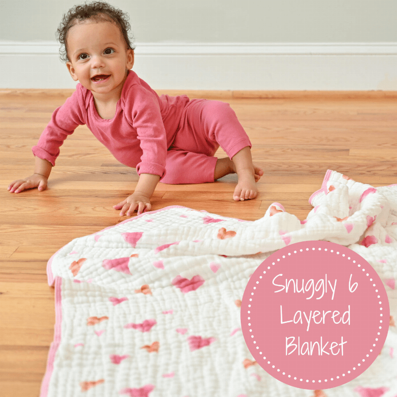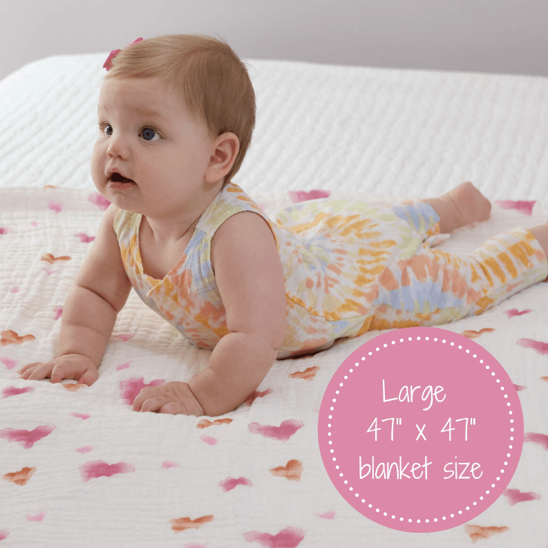 • WARM AND SNUGGLY BLANKETS - Cuddle up with a LollyBanks 100% cotton muslin heart quilt to make your baby warm even on the chilliest of winter days or those cool summer nights. Each 47x47 blanket is the perfect size to keep with your newborn through their toddler years.