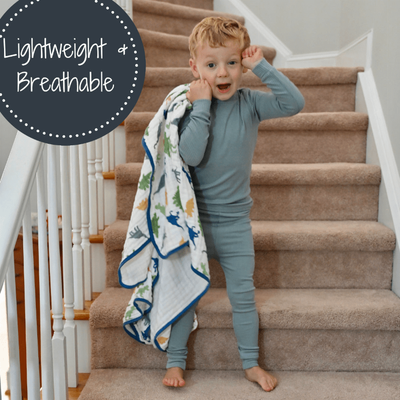 • WARM AND SNUGGLY BLANKETS - Cuddle up with a LollyBanks 100% cotton muslin dinosaur quilt to make your baby warm even on the coldest of days. Each 47x47 blanket is the perfect size to keep with your newborn through their toddler years.