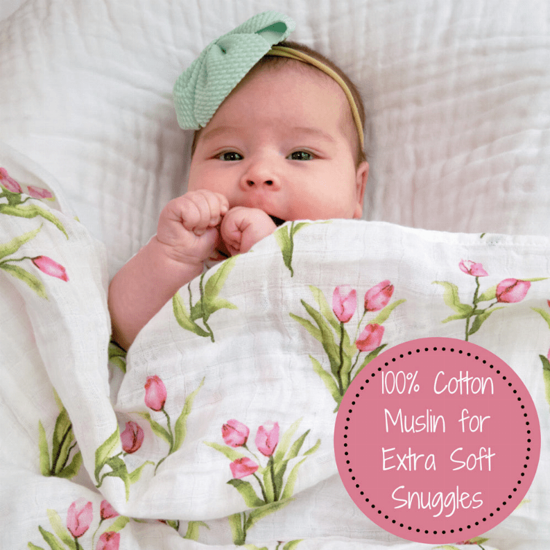 • BEAUTIFUL FLOWER PRINT - This stunning tulip print is sure to bring happiness and smiles every time it's in use. It is perfect for keeping in the nursery or using as a stroller cover for your baby. Moms and dads will love receiving these as a baby shower gift or welcome present.