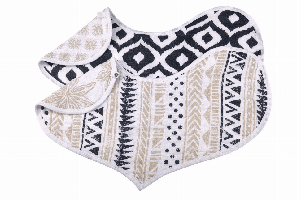 Soft and comfortable 100% natural cotton muslin. These stylish and easy to care for bibs feature multiple snaps for a perfect fit. The extra absorbent fabric makes these bibs a must have for feeding and teething.