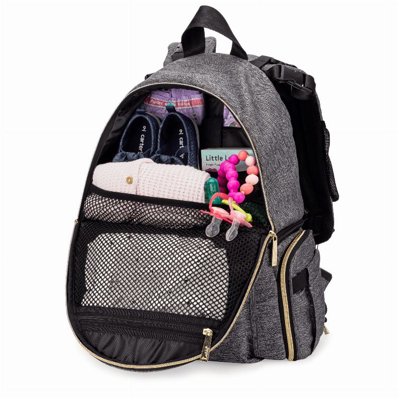 - Pockets on shoulder straps for quick access to smaller items like binky, phone, or keys.