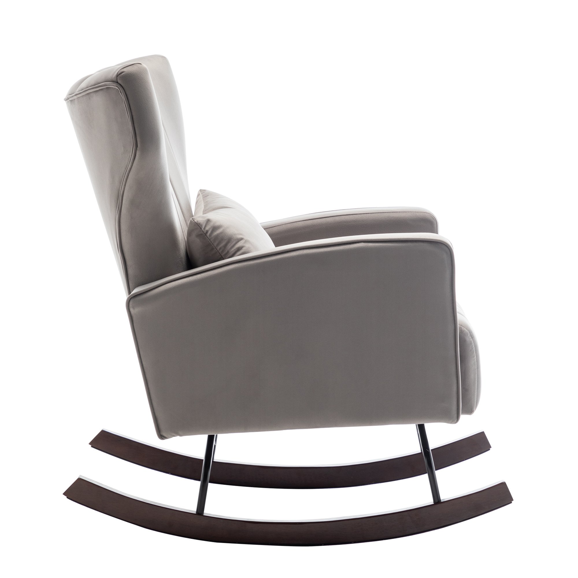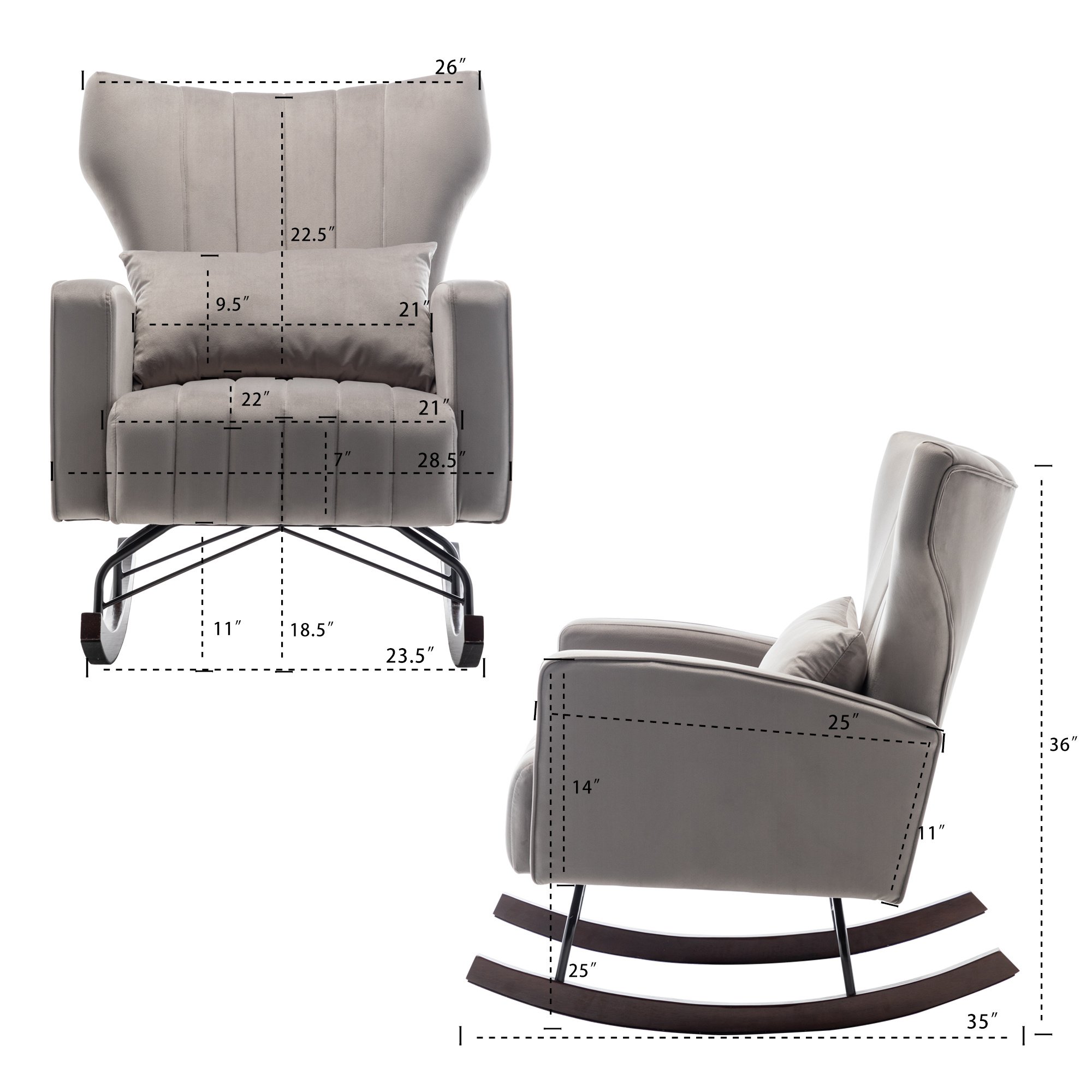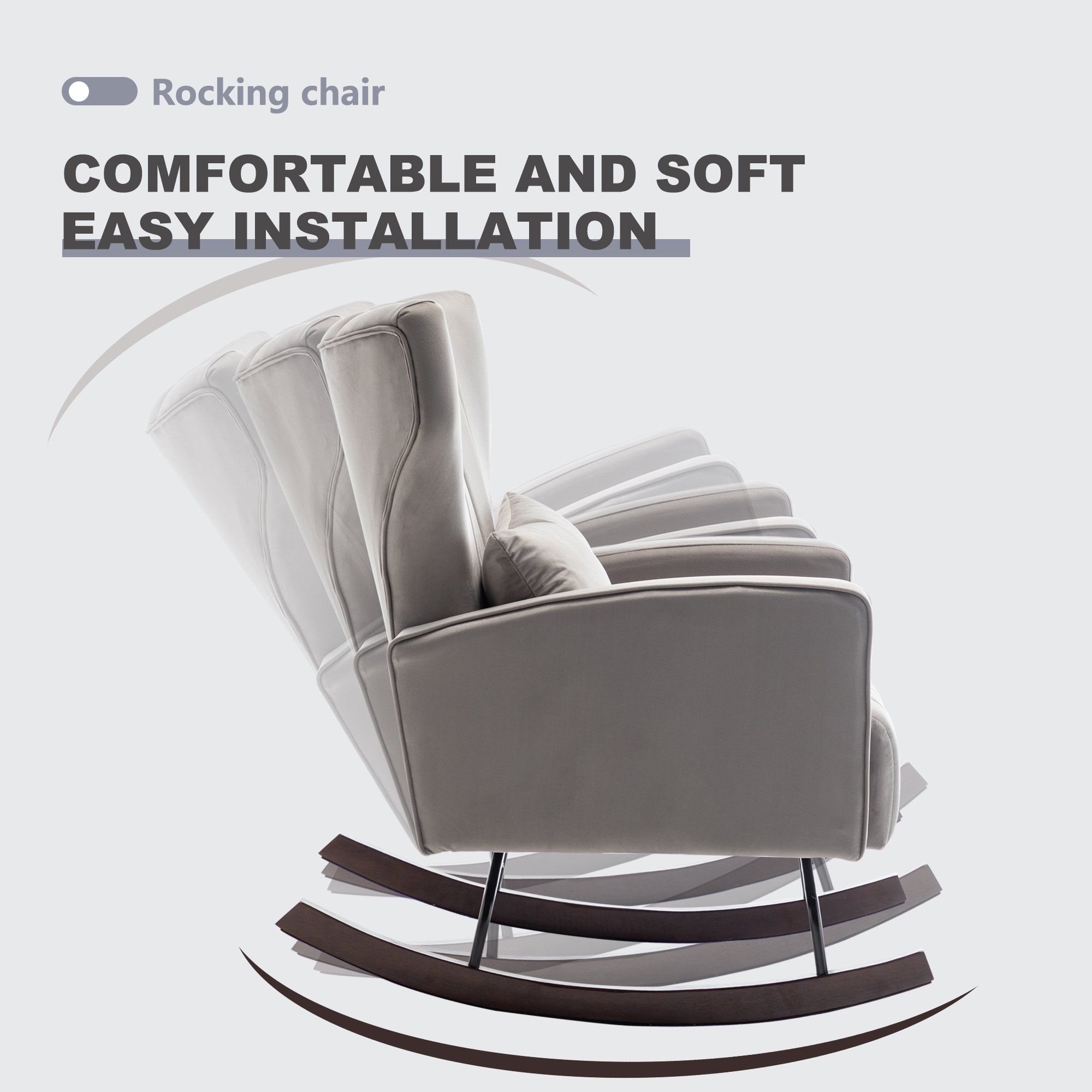 Velvet Nursery Rocking Chair; Accent Rocking Chair with with Solid Metal Legs; Upholstered Comfy Glider Rocker for Reading; Bedroom and Living Room
